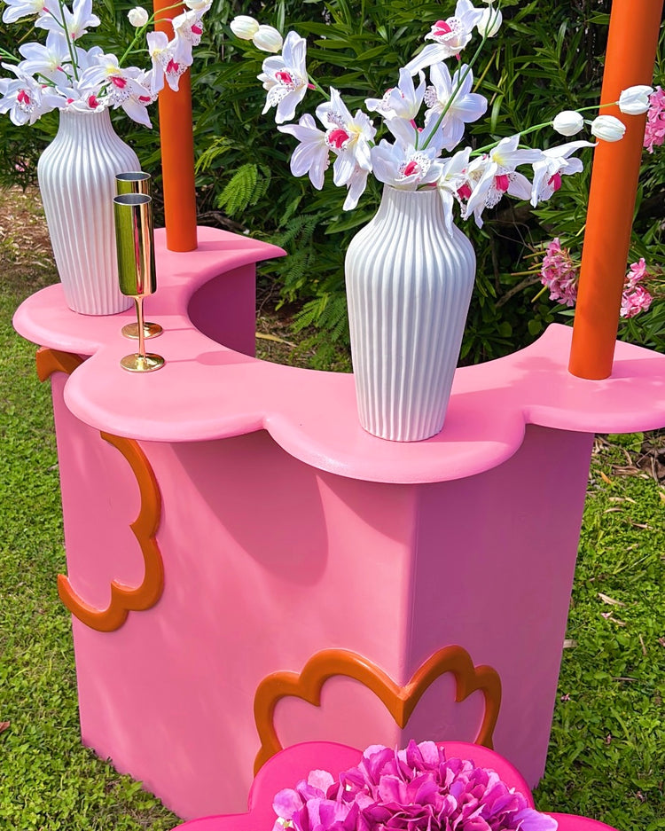Curious began as a small, colorful studio in Hawai'i where I designed and shipped over 13,000 unique pieces. I learned fabrication the gritty way, and what works beyond the mood board. Eventually, the ideas outgrew the workshop. Now I design bold fixture systems that are built by teams anywhere.