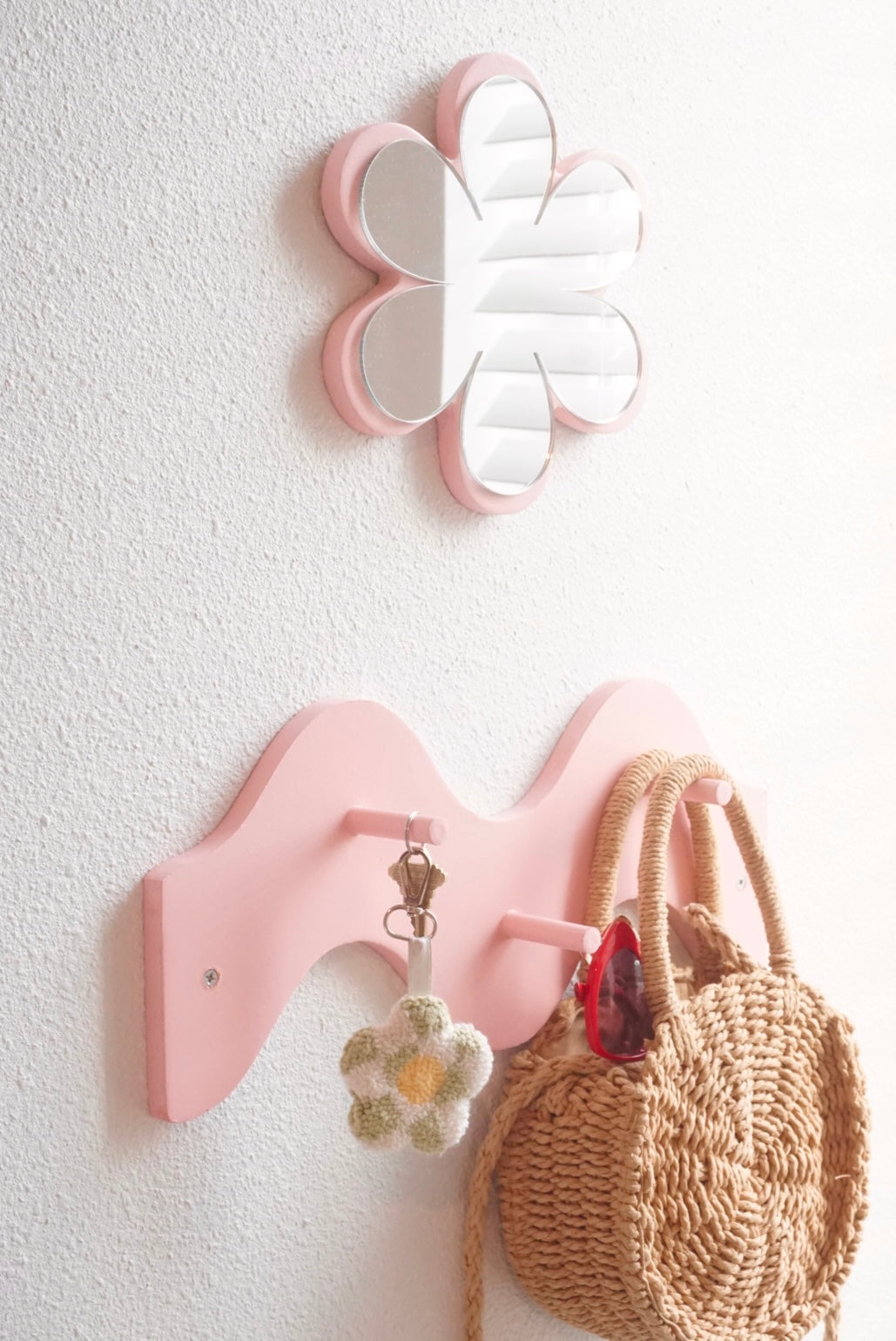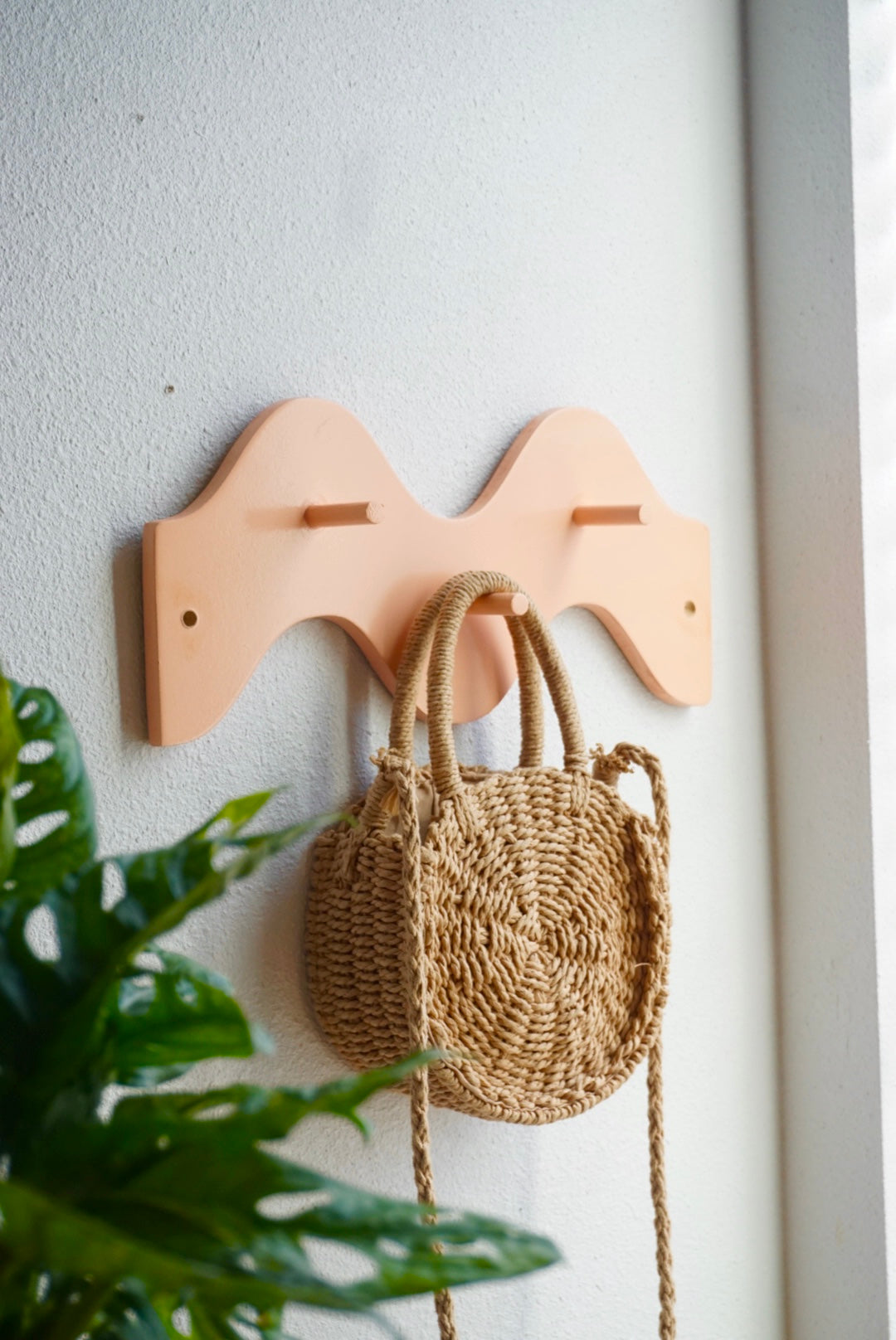 An ode to our popular Original Wavy Wall Shelf, in wall hook form! There are three hooks to securely hang a variety of items such as bags, keychains, jackets and more.