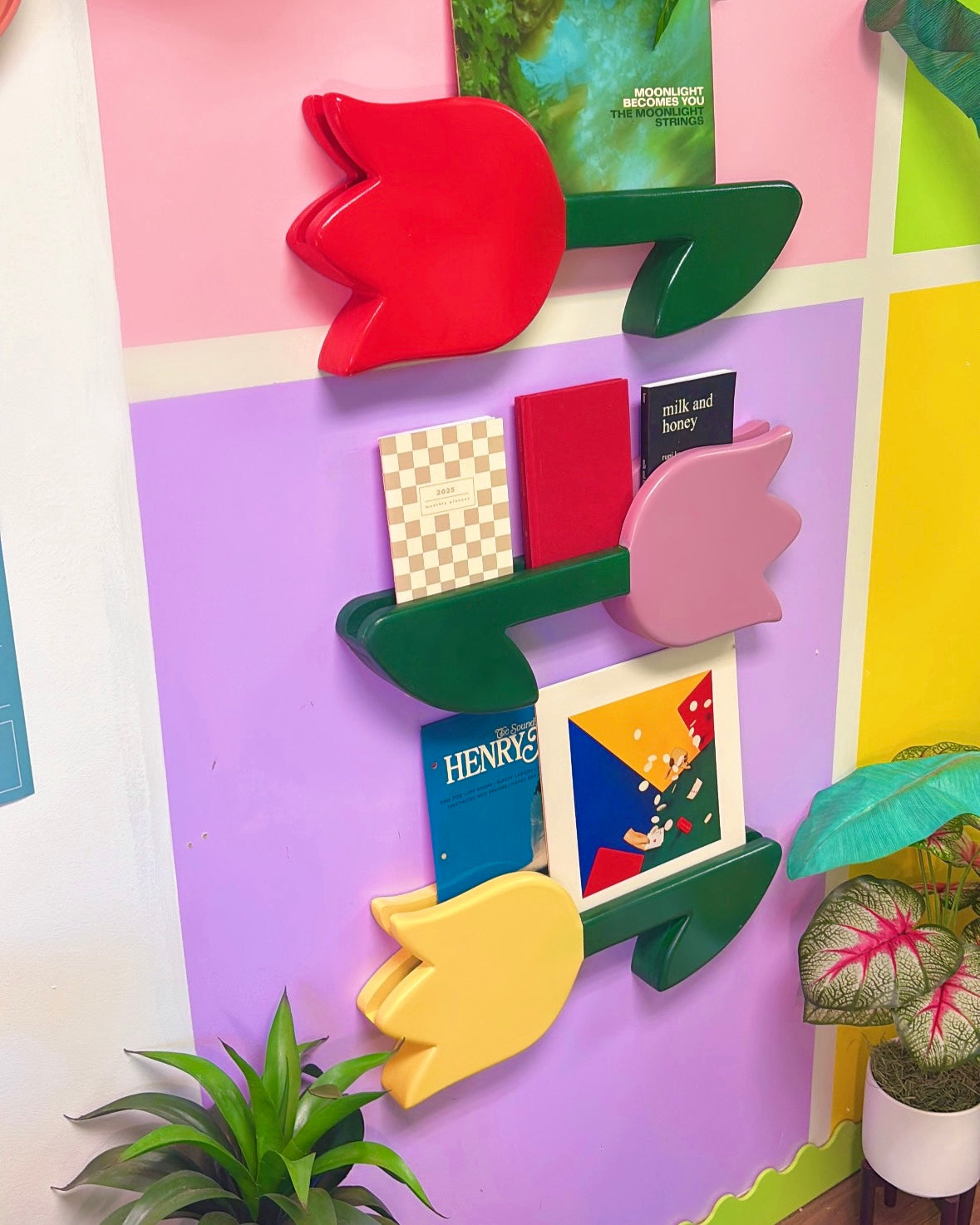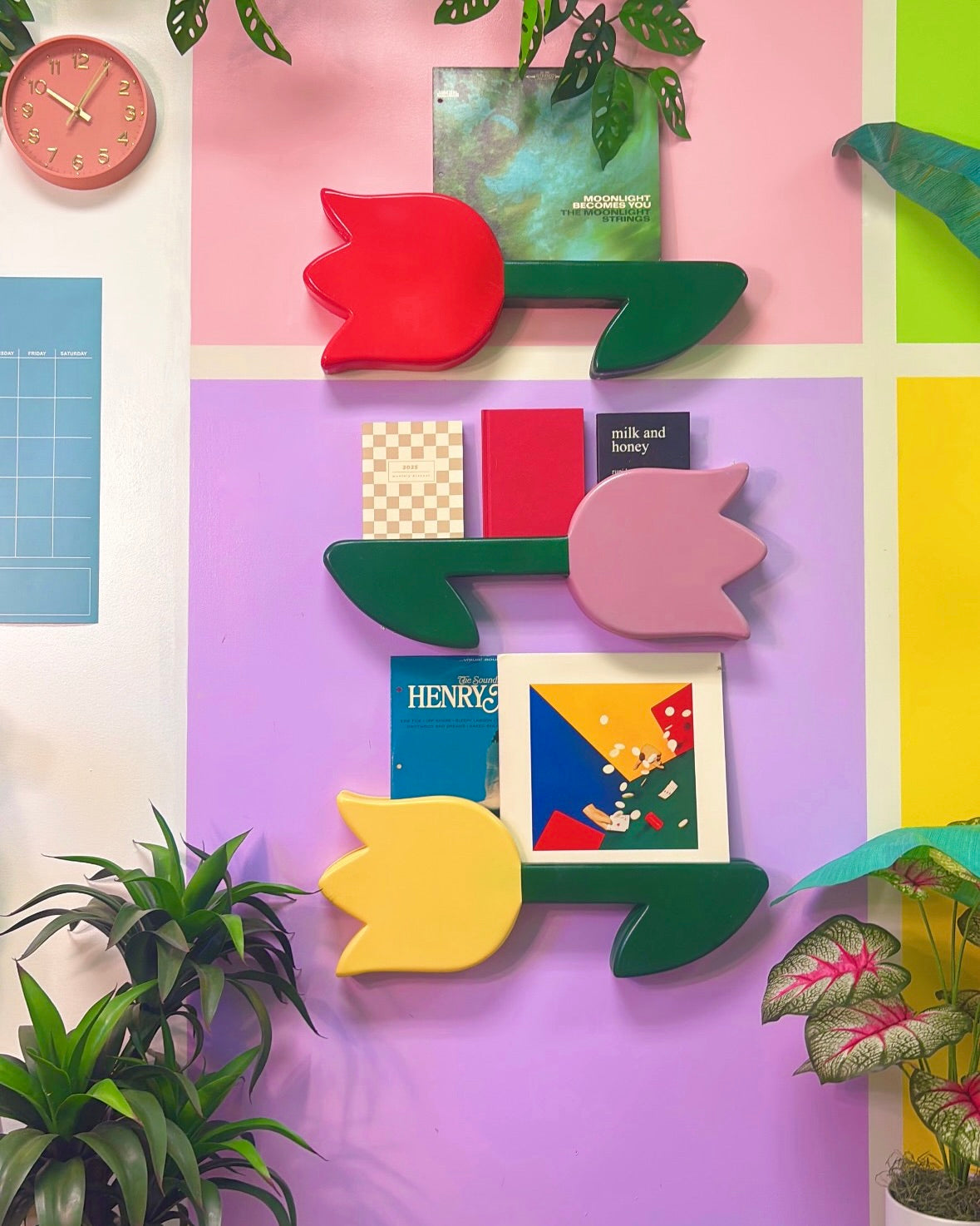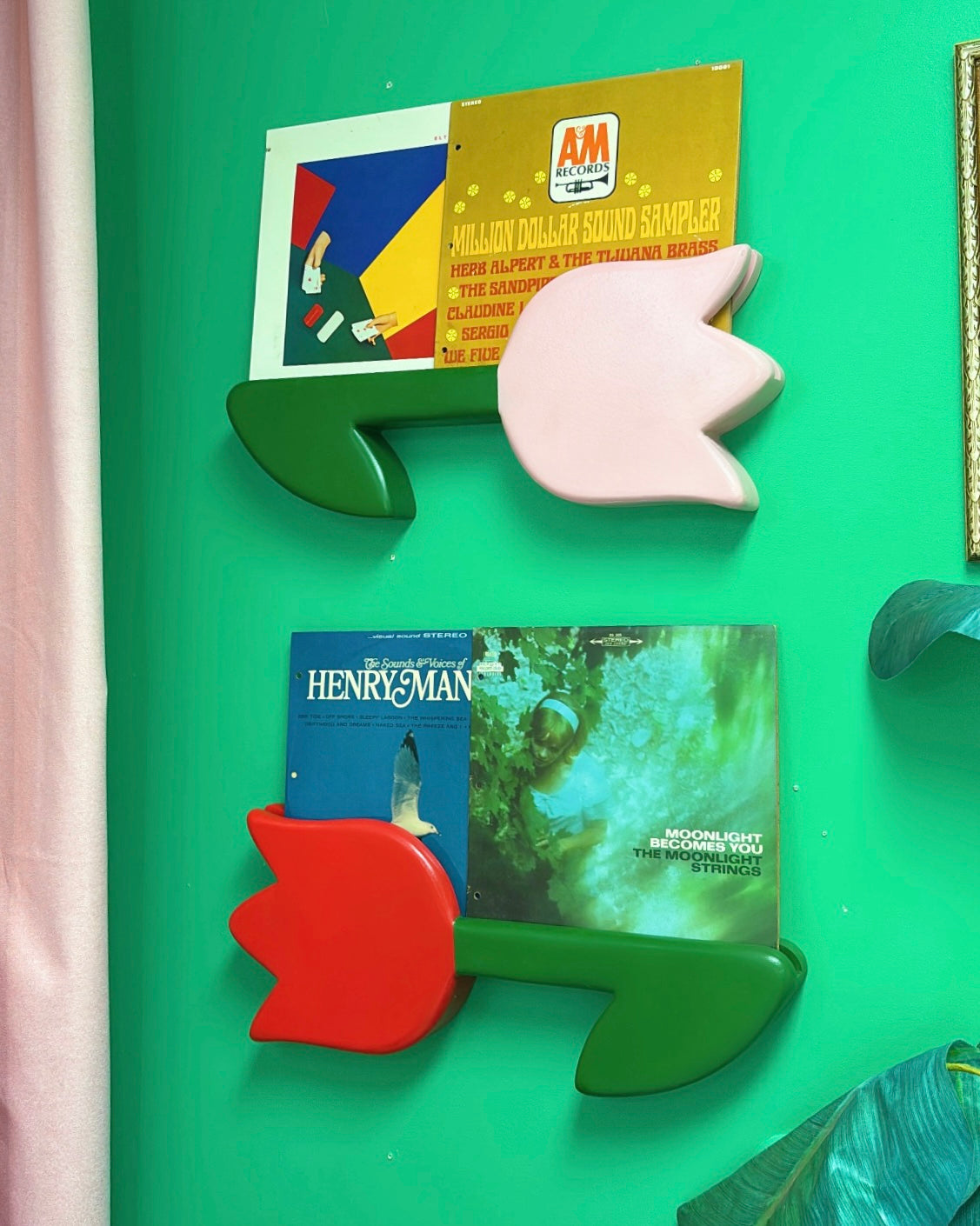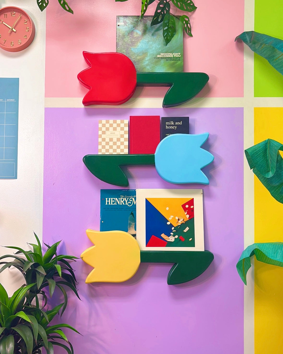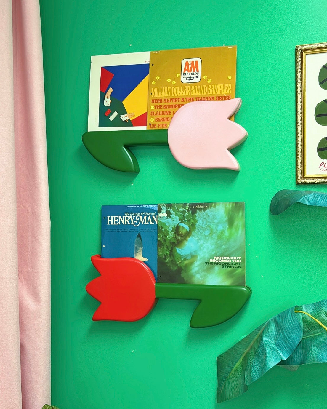 Each tulip is a collectible that doubles as both décor and display. The slender 0.75” slit securely holds records or prints, while the tulip’s bold silhouette adds a nostalgic, statement-making pop to any room.