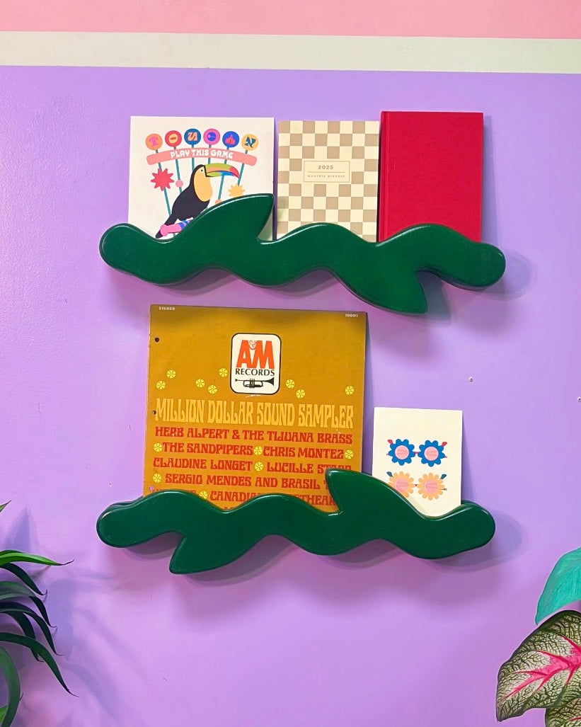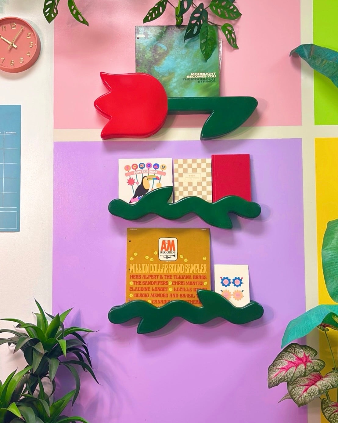 Bring a touch of playful greenery to your wall with the Vine Picture Ledge — a sculptural accent piece designed to mix, match, and layer with your favorite flower shelves. With its wavy silhouette and signature Seaweed Green finish, the vine is perfect on its own or paired with a Daisy or Tulip for a dimensional “garden wall” moment.