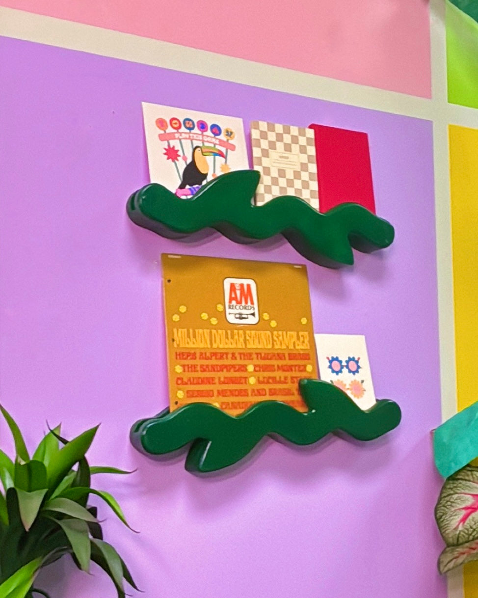 The 0.75” slit securely holds records, art prints, or slim picture books, blending function with Curious’ nostalgic, maximalist aesthetic. Whether displayed solo or as part of a set, the vine adds a whimsical touch to any space.