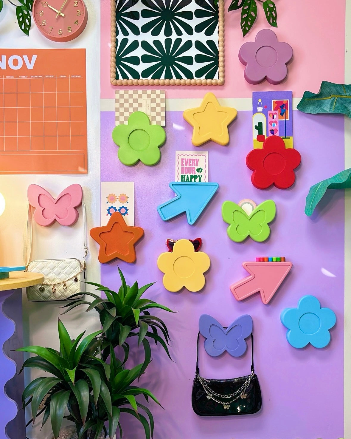 Pick any 3 wall hanger styles (Daisy, Butterfly, Cursor, Star) in your fave solid colors and create your own perfect trio.