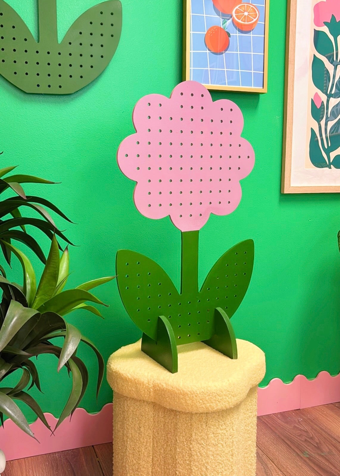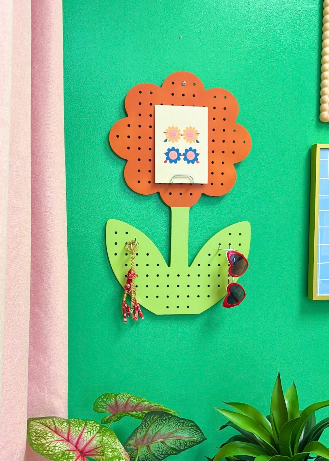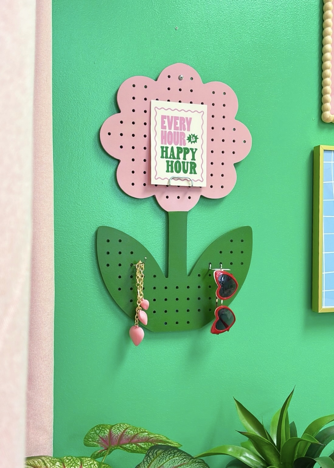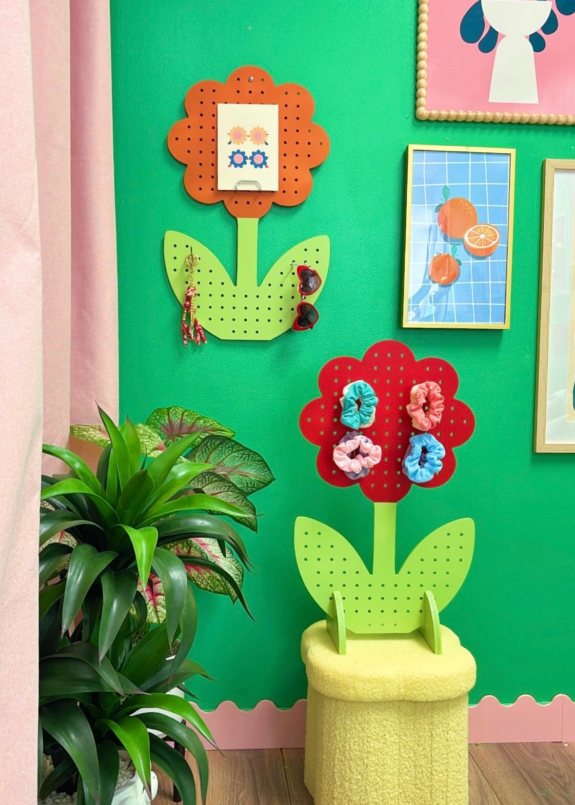 This cheerful flower pegboard brings doodle energy to your space. At home, it keeps accessories organized and on display. At a market, it’s a happy little backdrop for earrings, keychains, or small goods that deserve attention.