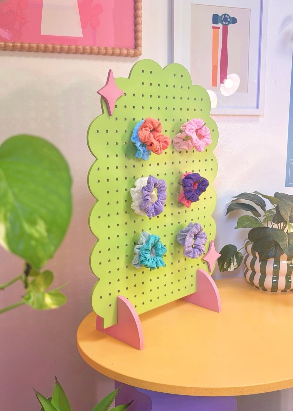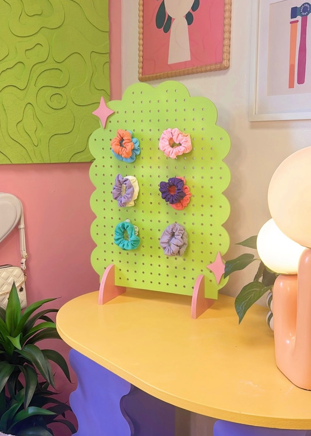 With scalloped curves and sparkly cutouts, Cleo is pure dopamine décor. A dreamy statement piece that makes anything you hang feel like part of the show.