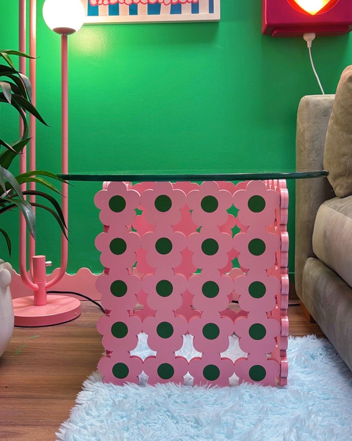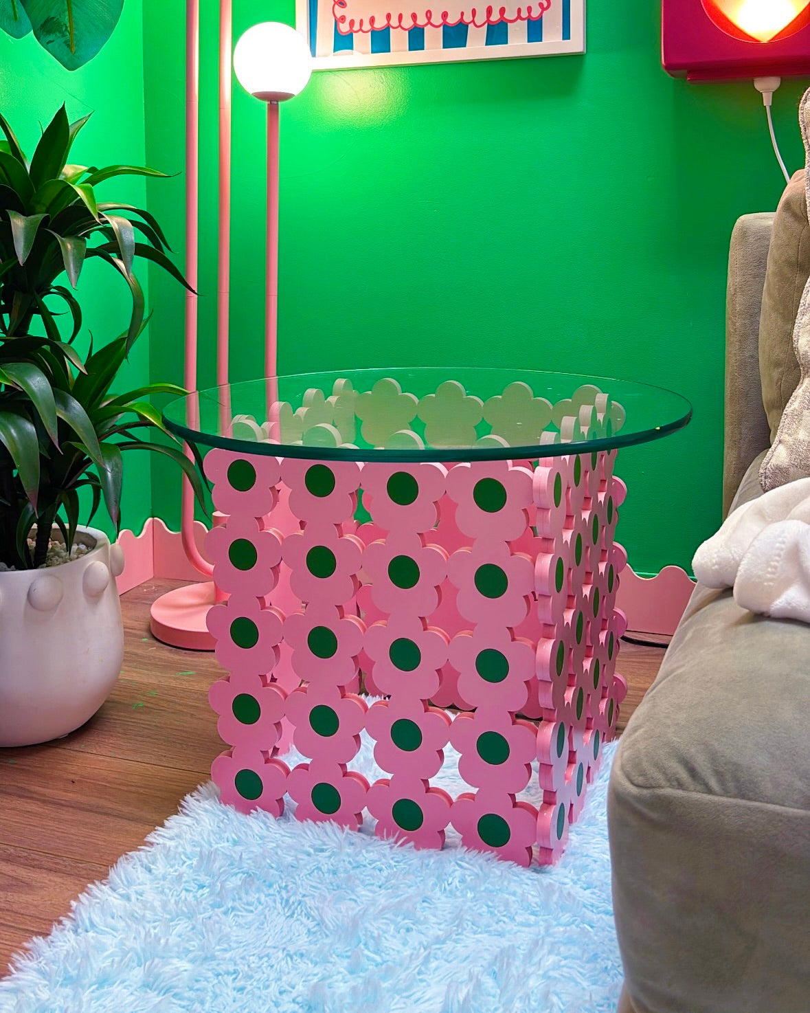 This piece is pure dopamine decor — bright, happy, playful, and impossible not to smile at. Perfect as a bedside table, plant stand, or just a ✨main character moment✨ in your space.
