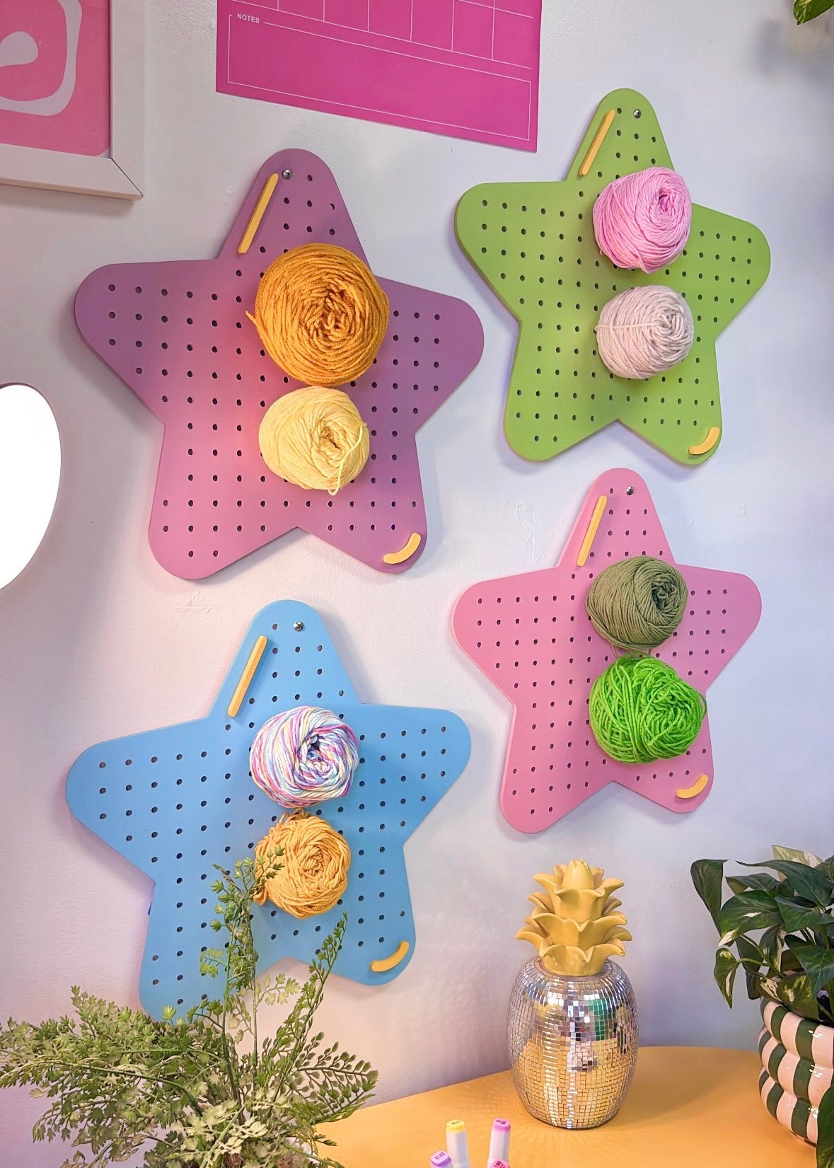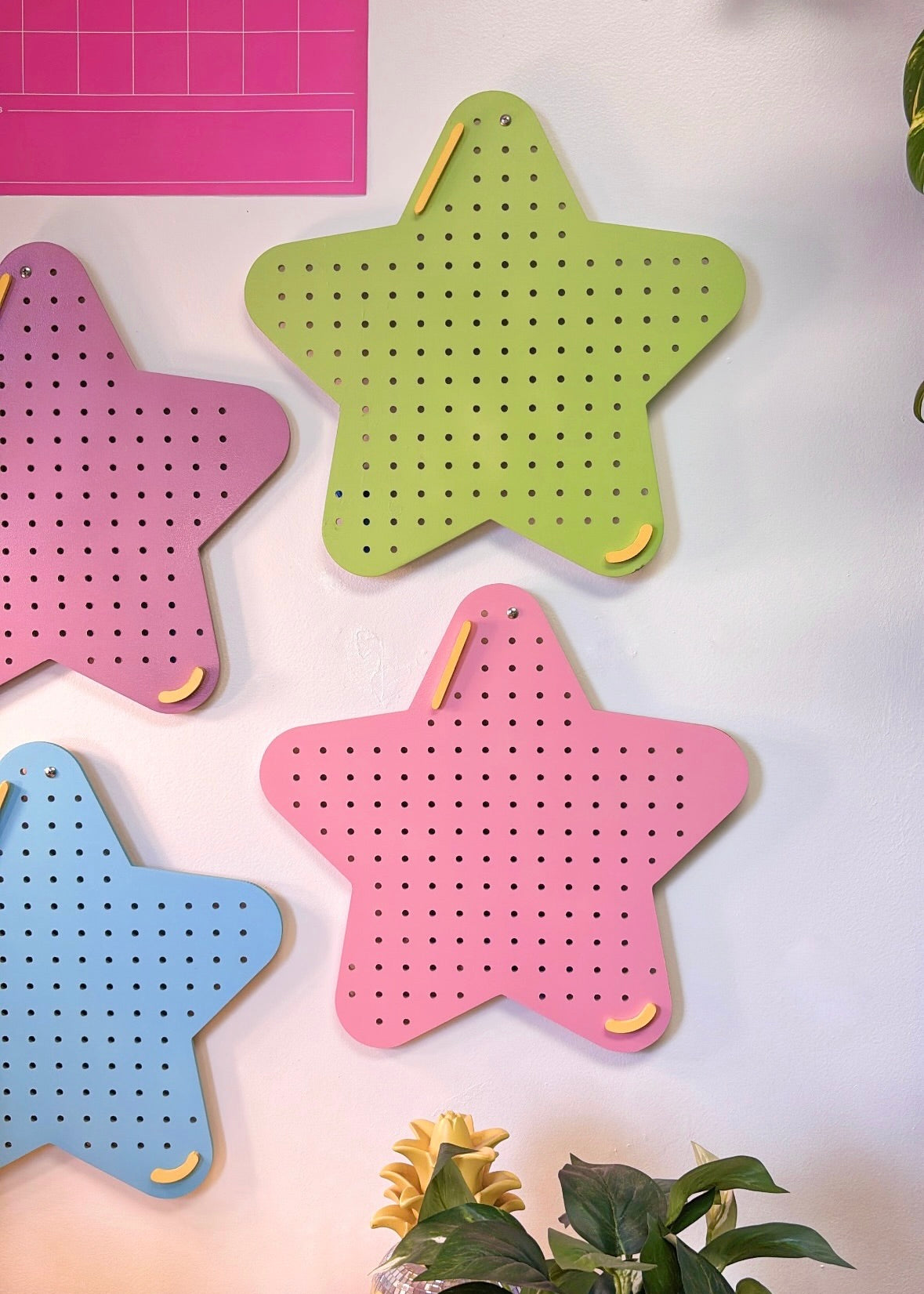 Shiny, bold, and straight out of a 2003 moodboard — the Starlight pegboard is giving Y2K nostalgia in the best way. Perfect for hanging jewelry, styling keychains, or just vibing as wall art that says “main character energy.”