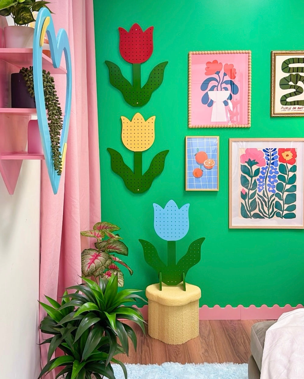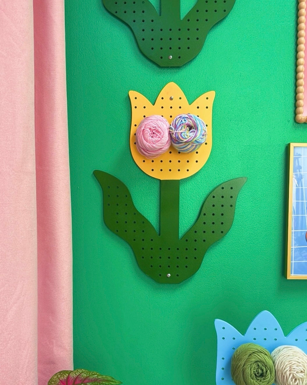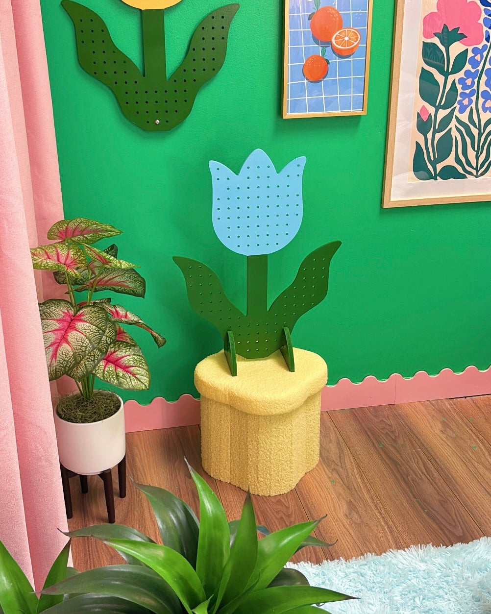 The Tulip Pegboard adds effortless whimsical charm to your space. In your home, it’s a stunning pastel floral wall piece. In your shop or booth, it’s a fresh way to display products with a floral twist that doubles as branding.