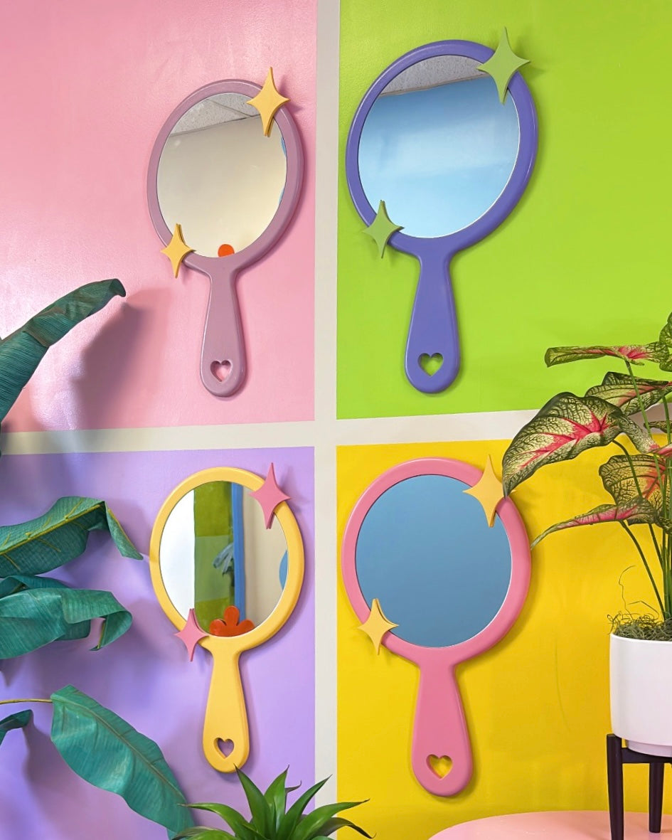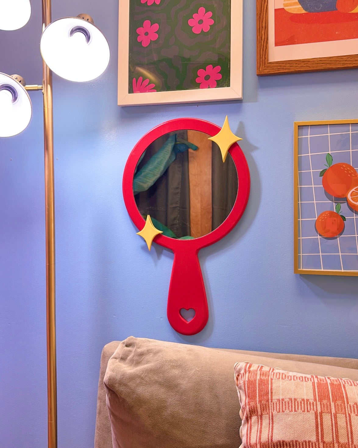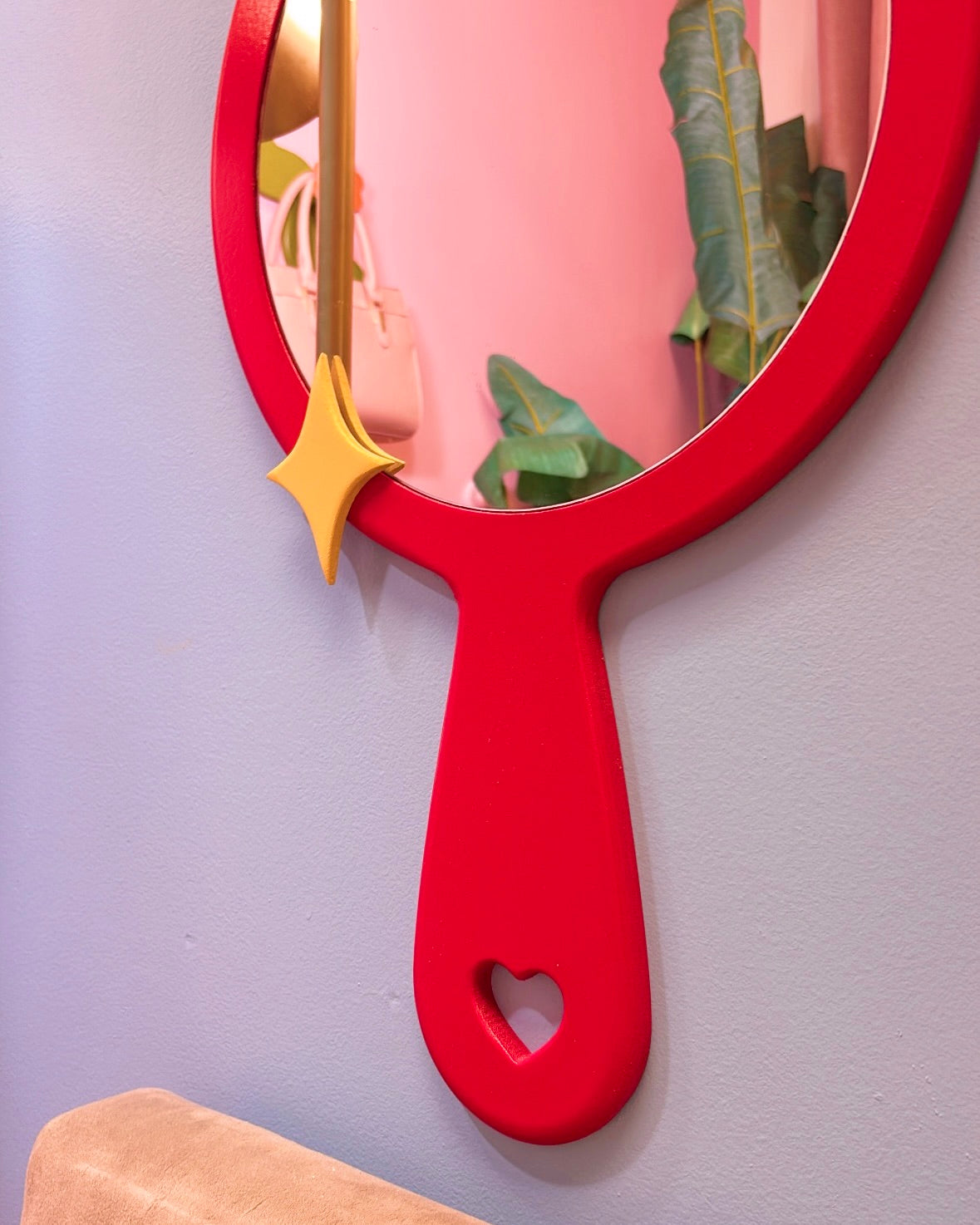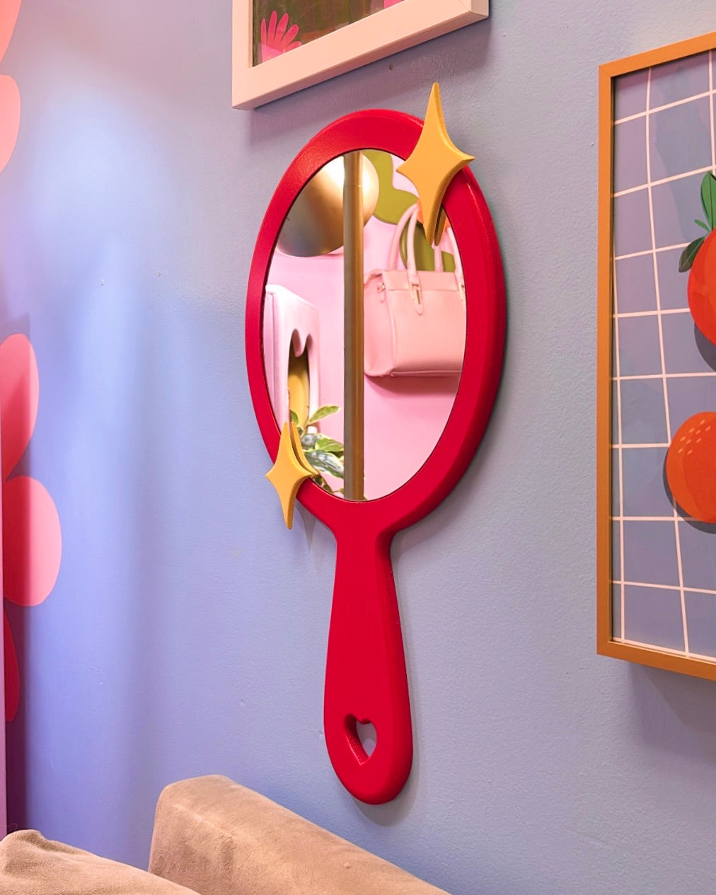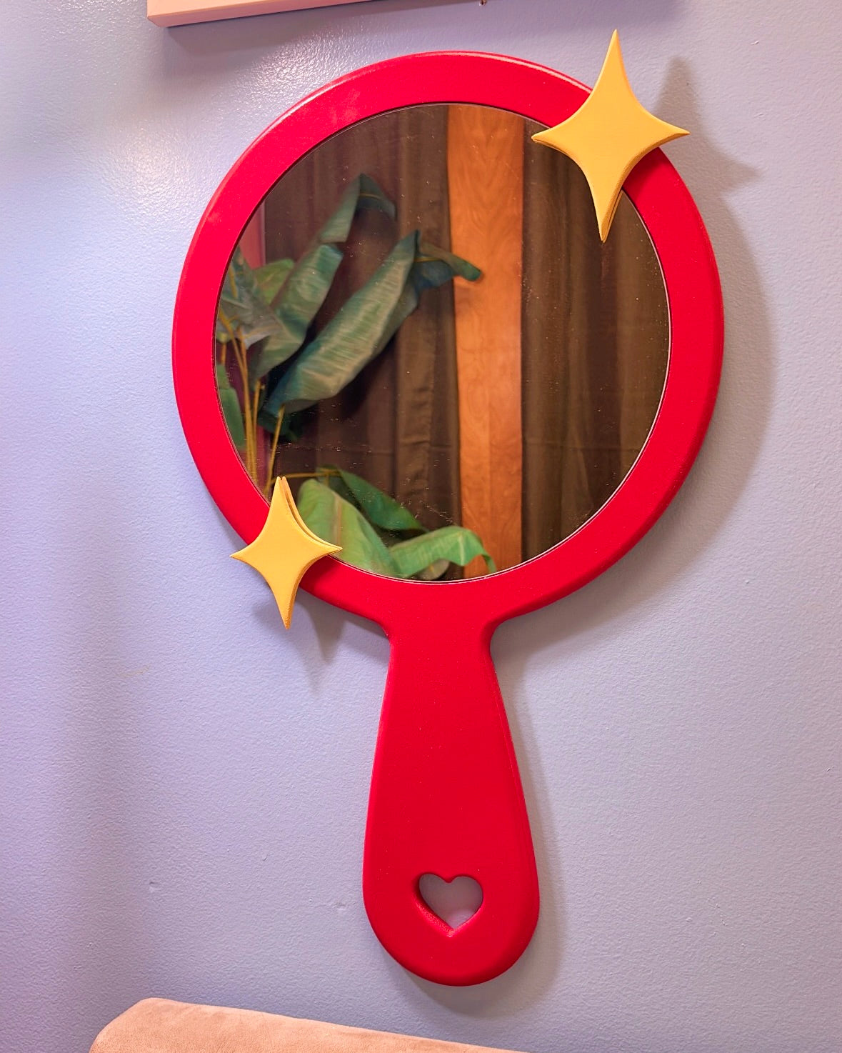 Our Vanity Mirror brings cartoon-inspired charm to your daily routine! This oversized hand mirror features playful sparkles and an adorable heart detail that adds a pop of personality. Its whimsical design captures nostalgic vibes while making mirror checks way more fun. :)